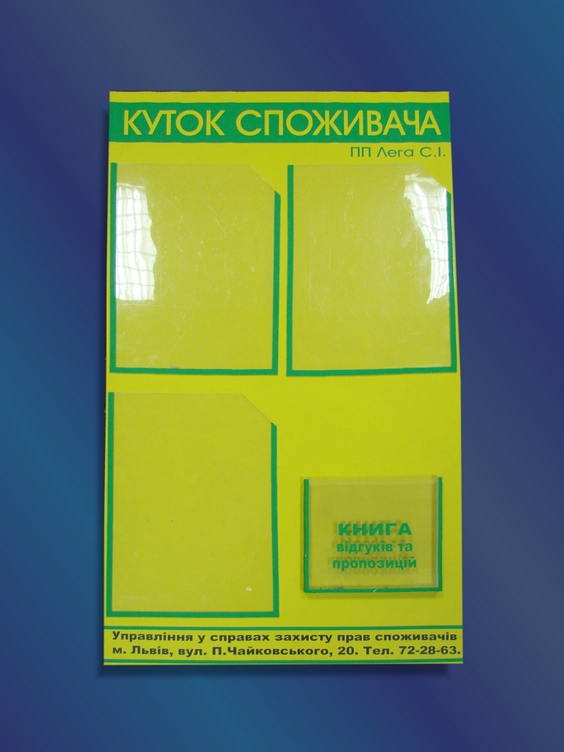 Таблички, кутки споживача, штендери